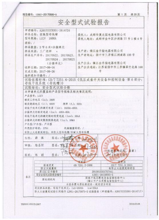 LCCV 密集型母線槽(1600A)試驗報告
