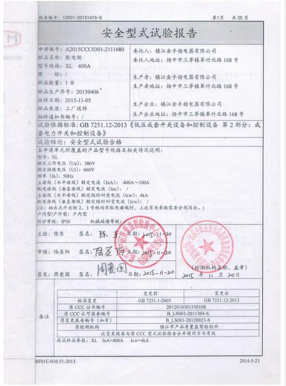 XL 配電柜 (400A) 試驗報告